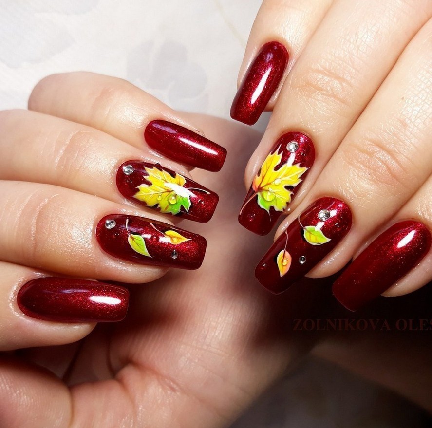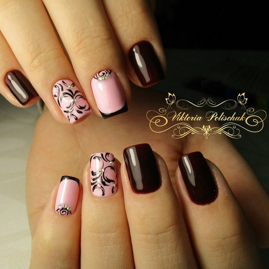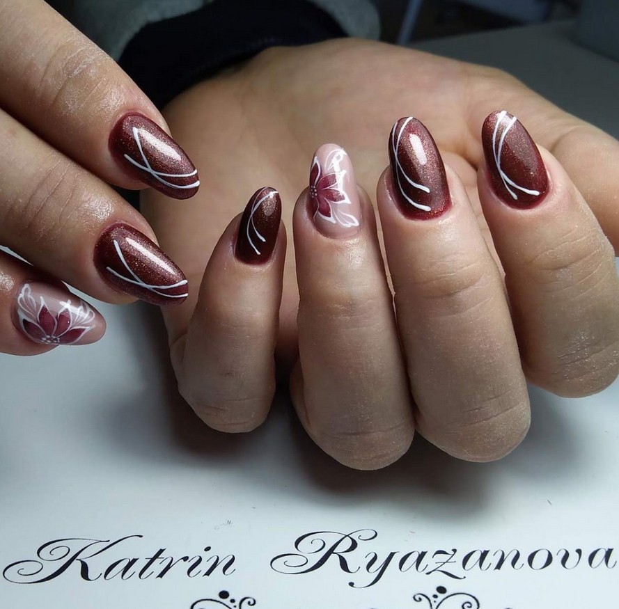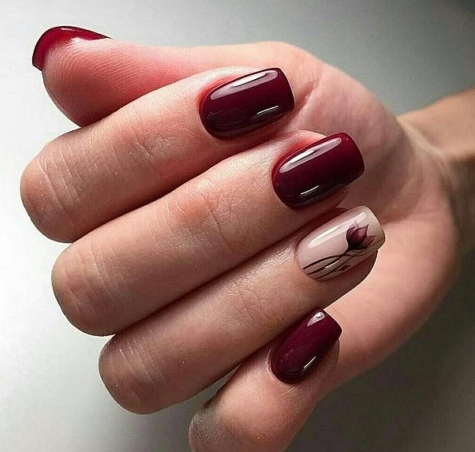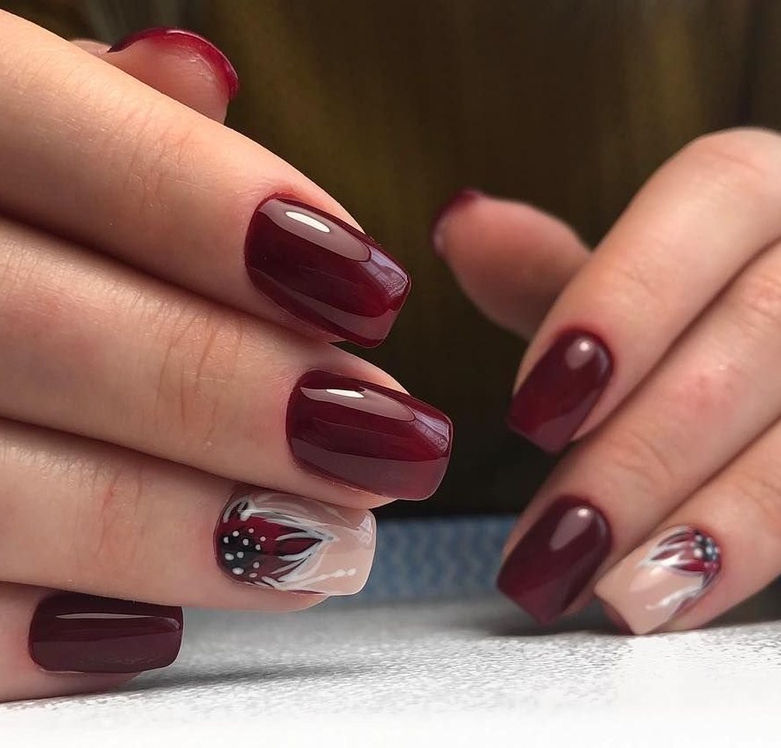 Модные дизайны маникюра в бордовых тонах