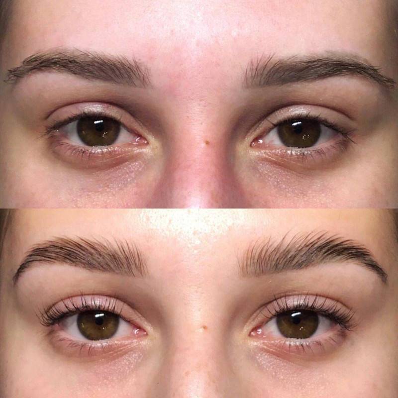Такая процедура, как ботоксное восстановление волосков, может проводиться не только на ресничках, но и на бровях. Если волоски истонченные, а сами брови не радуют густотой, нанесение укрепляющего состава поможет спасти ситуацию. Подобная процедура показана также обладательницам густых и неукротимых бровей, с которыми возникают сложности во время укладки. Сыворотка укрепит волоски, уплотнит их и сделает темнее. После процедуры брови обретут более ухоженный вид, будут держать форму.