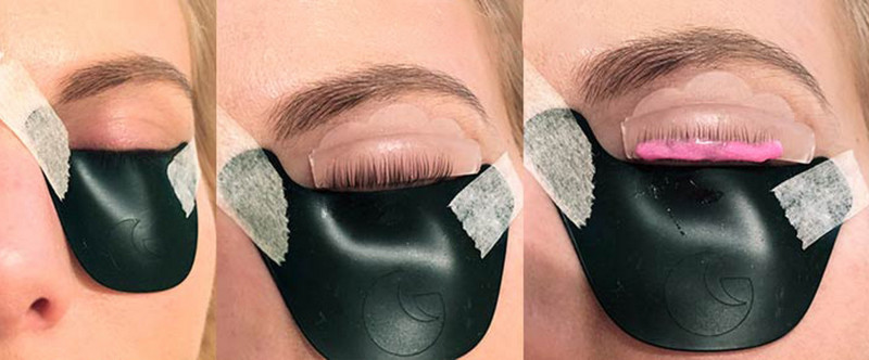 Для того чтобы защитить нижнее веко и отделить нижние ресницы, мастер наложит на нижнее веко патч. Таким образом ему будет легче работать. Затем мастер подберет специальные силиконовые завитки (их еще называют бигуди) для ресниц. Есть три типа завитков в зависимости от длинны ресниц. Этот этап является крайне важным, так как от того, как будут выложены ресницы на завитки зависит весь эффект от данной процедуры