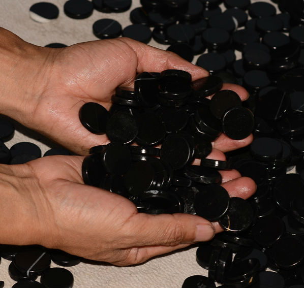 Аксессуар сделан из полудрагоценного камня – черного или вороного нефрита, добываемого в китайской провинции Шаньдунь. Согласно местной легенде, порядка шестидесяти миллионов лет назад туда упал метеорит, и, вследствие мощнейшего взрыва, огромного давления и высоких температур, в толще горных пород образовался уникальный камень – продукт взаимодействия земных пород и метеоритной плазмы.