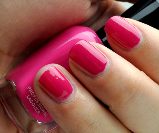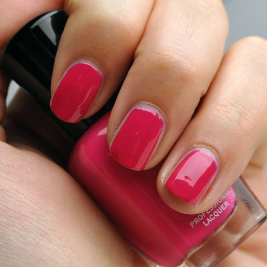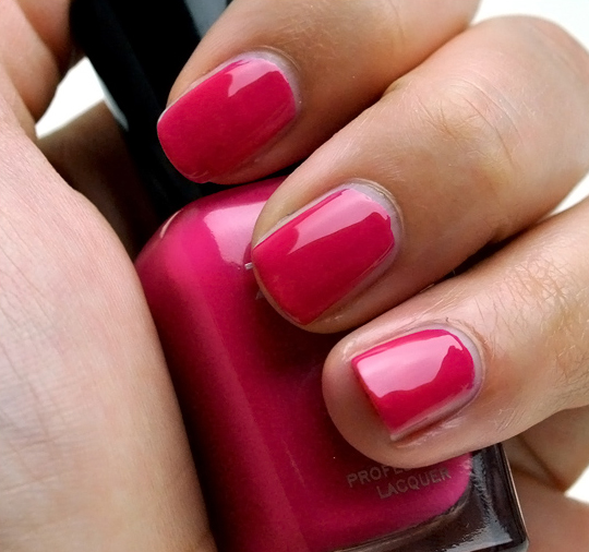 - Dana is a softly brightened fuchsia-red cream. It’s a pretty shade of rasperry-ish fuchsia that doesn’t look too bright, but it’s not going to hide in the background either. Like the other shades, this only needed two coats for full color coverage.
