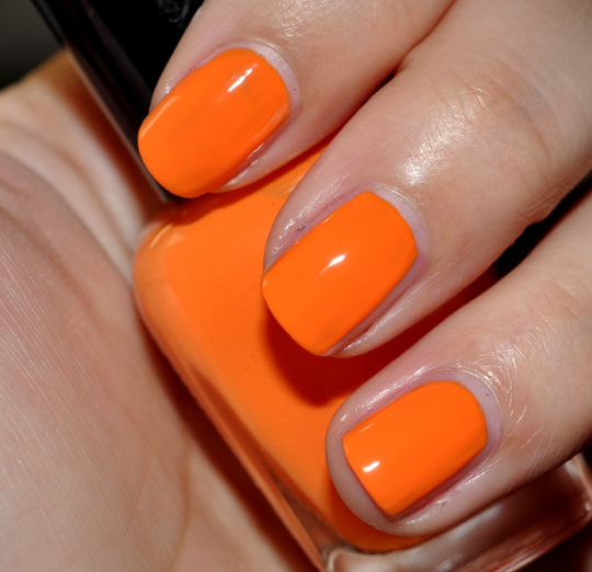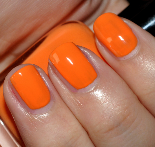 The formula on all but Jancyn was smooth, even, and incredibly pigmented. You only needed two coats for solid, opaque color on each shade–again, with the exception of Jancyn–and on Maura, you could have gotten away with just one. It’s a smooth formula with a good consistency–not too thick, not too thin–which makes for an easy application. I didn’t have to experiment to find the “right” way to apply these. I liked that you could get nearly neon color without some of the application troubles neons pose. But to be clear, these are definitely creams and not neons, and they try with a slight glossiness rather than the near-matte of typical neons.