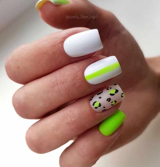 Салатовый маникюр с разным сочетанием цветов