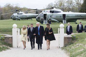 Первая леди Франции Брижит Макрон и Президент Франции Эмманюэль Макрон с Президентом США Дональдом Трампом и Первой леди США Меланией Трамп во время официального визита в Вашингтон, 23 апреля 2018