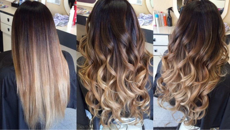 - Брондированиеомбрепредполагает плавный переход от темных корней к более светлым кончикам;
