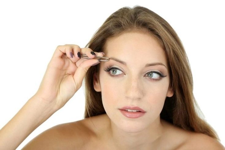 Помните, что необходимо выдергивать только по одному волоску по линии роста волос при этом придерживая кожу брови.