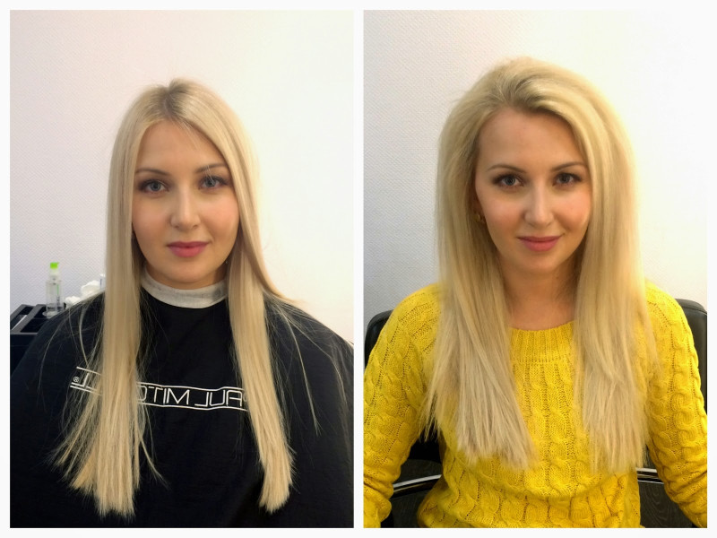 После 3-х часов мучений объем моих волос увеличился где-то на 10%. Так же мастер грозилась, что теперь мои волосы станут грязниться гораздо медленнее. Действительно, примерно первые пару недель грязнились чуть меньше, потом снова все вернулось на круги своя.