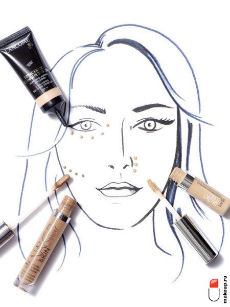 Обратите внимание, что консилер следует наносить поверх тонального крема, а не под него.
