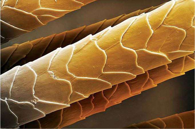Наверное, многие видели в рекламе шампуня, как выглядит волос под увеличением. Структура волоса напоминает еловую шишку. У здоровых волос «чешуйки» плотно прилегают к стрежню, а вот если есть дефицит влаги, то чешуйки отходят от основания, в результате, пряди выглядят тусклыми, путаются и ломаются.
