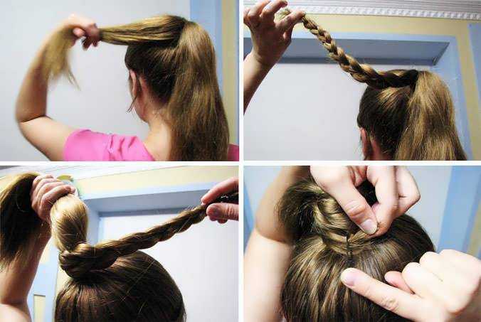 - можно сначала заплести хвостики в косички, а затем уже формировать пучки.