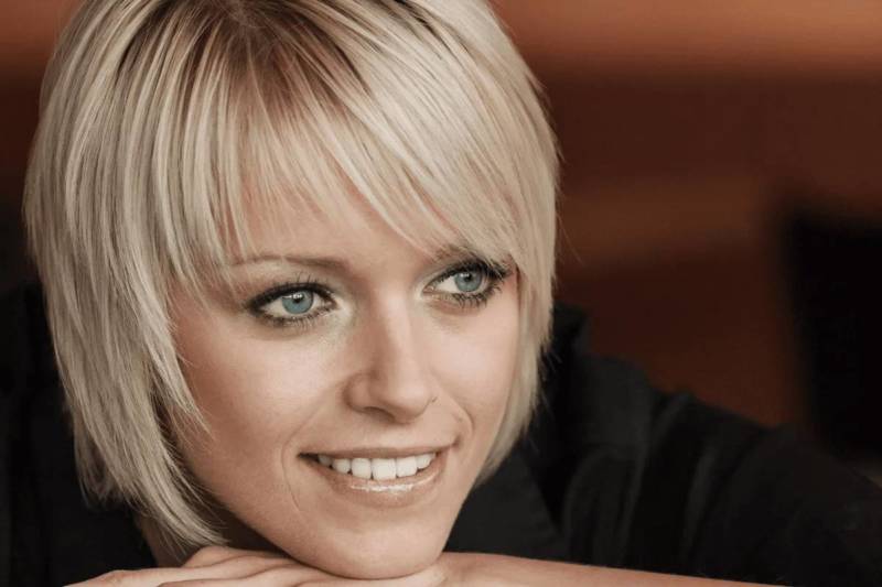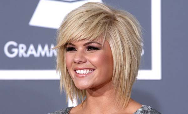 Интересно смотрится прическа с челкой. Такая стрижка корректирует ширину подбородка и визуально меняет форму лица.