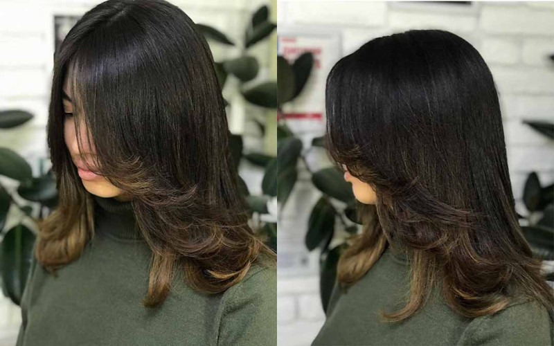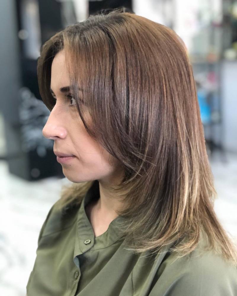 Предполагает, что боковые пряди постепенно удлиняются. Начинается процесс от скулы и середины уха. Главное — чтобы переходы между слоями оставались плавными, насколько это возможно.