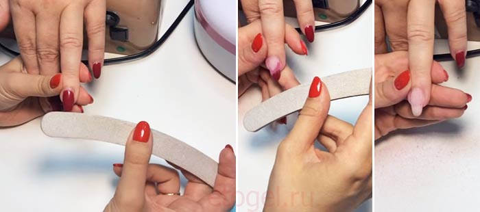 - Ногти коротко остригают и спиливают с них один слой геля.