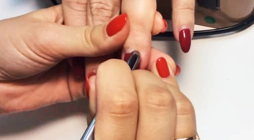 - Когда покрытие высыхает, мастер, используя разные виды пилок, придает ногтям окончательную форму.