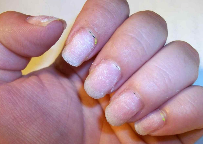 Думая, как снять маникюр, многие женщины начинают отламывать гель-лак по кусочкам прямо руками. Такое случается, если от длительного ношения он сам начал частично отслаиваться. Впечатление, что материал отошёл со всей пластины, и его можно снять одним движением, обманчиво. В некоторых местах он все равно плотно сцеплен с поверхностью. Итогом будет отрыв тонкого верхнего слоя ноготка, после чего он станет ломким, тусклым, потребует долгого восстановления.