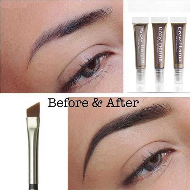Считается, что хна больше окрашивает кожу, а не волоски. Поэтому она подойдёт обладательницам не слишком густых бровей. Благодаря хне цвет будет равномерным, так как свободное от волосков пространство окрасится достаточно интенсивно. Брови после окрашивания хной выглядят так, будто был сделан татуаж, при чём достаточно качественный. Правда, эффект этот будет не долгим.