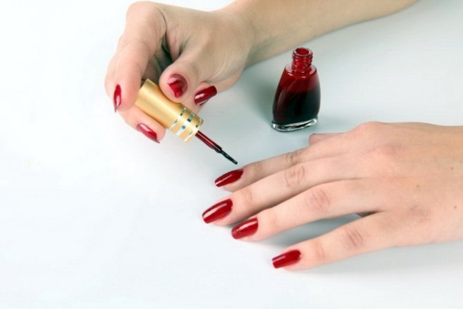 - Наносите лак сначала на серединную часть ногтя, а затем закрашивайте «бока» — так покрытие продержится дольше.