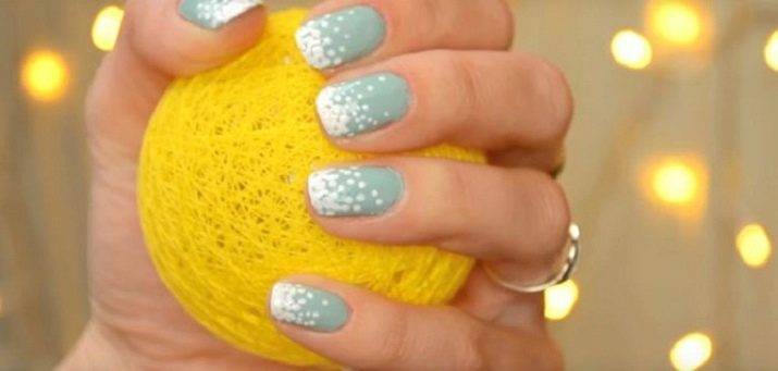 Зубочисткой можно легко выполнить рисунок на накрашенных ногтях. Для этого берут лак контрастного к основному цвета и палочкой наносят точки. Можно по-разному распределять их по поверхности. Например, у самого края сделать их много, постепенно уменьшая количество по направлению к лунке ногтя.
