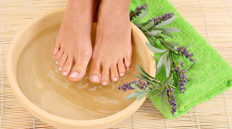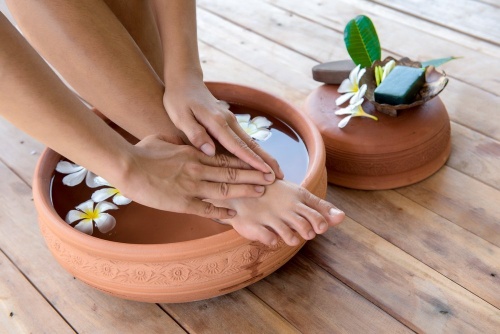 Ванночки для ног – приятная и полезная процедура, которую легко проводить в домашних условиях. Для этого достаточно подготовить емкость, в которую полностью влезут ноги. Это может быть тазик или специальная массажная ванночка. Перед началом сеанса ноги нужно намыть, а затем наполнить емкость водой комфортной для вас температуры. Процедура длится довольно долго, поэтому допускается добавление горячей воды для сохранения эффективности.