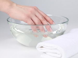 • Опустите ногти в ванночку на 15 минут, ополосните водой, намажьте питательным кремом.