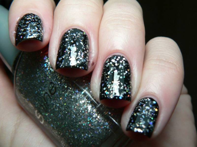 черный маникюр с блестками