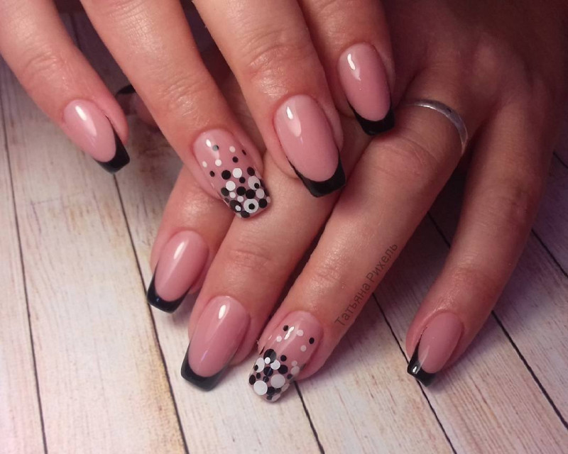 Французский маникюр в черно-белых тонах