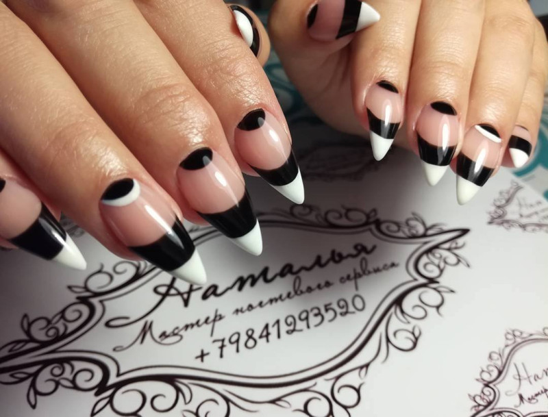 Френч в черно-белых тонах выглядит простым, красивым и элегантным. Хотя этот стиль может выглядеть несложным в исполнении, это лишь внешняя сторона медали.