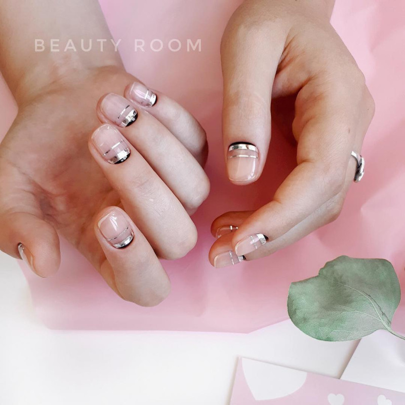 - Микс лунного и французского маникюра. Оба эти решения можно выполнить как на одном пальчике, так и скомбинировать на разных ноготках руки. Независимо от выбранного варианта, подобный маникюр смотрится супер стильно и нежно.