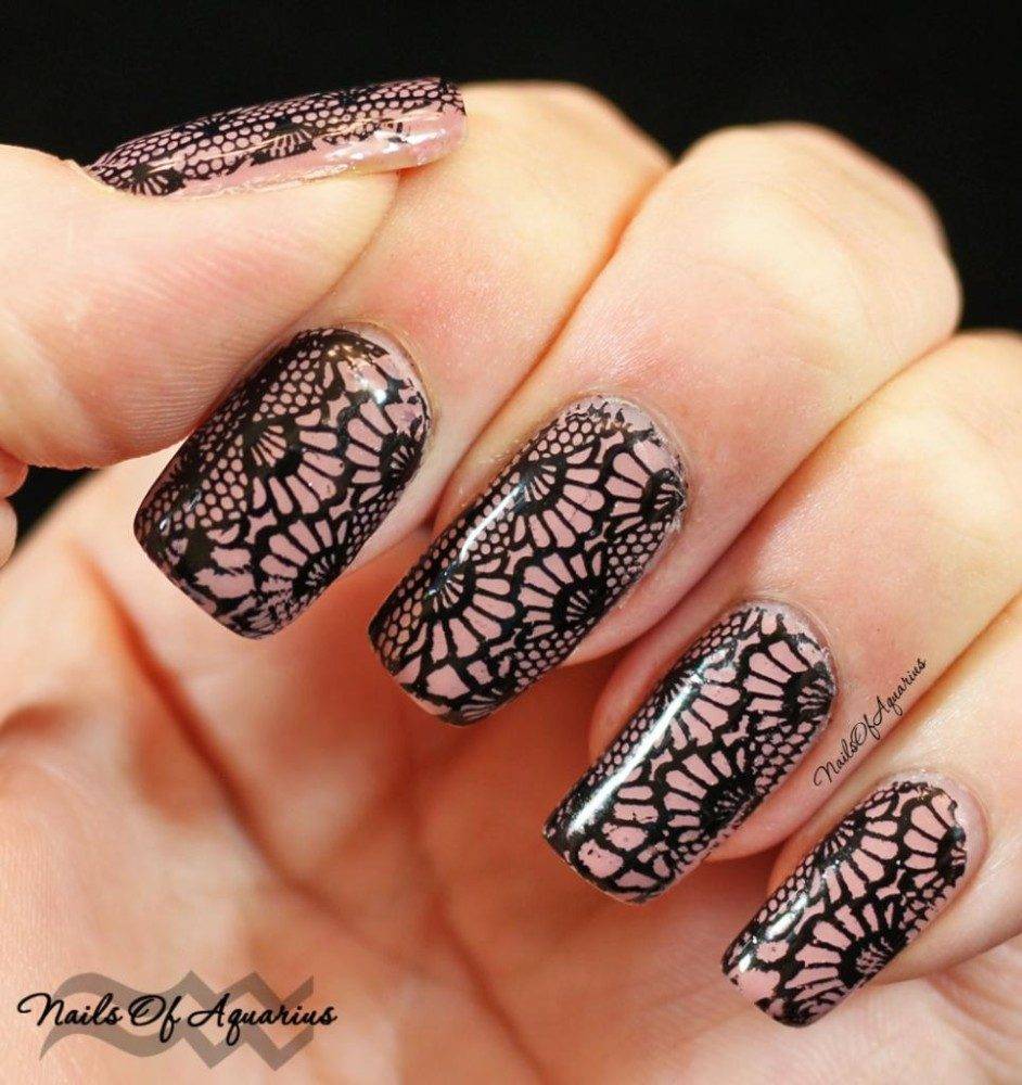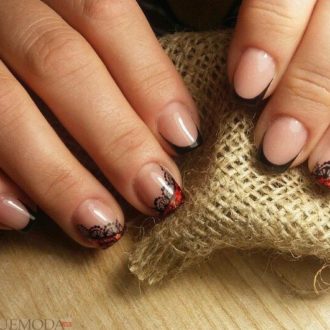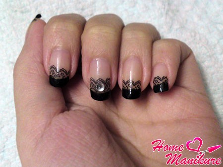 черный маникюр с кружевом