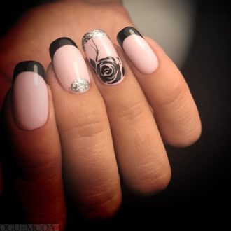 черный маникюр с розовым фоном