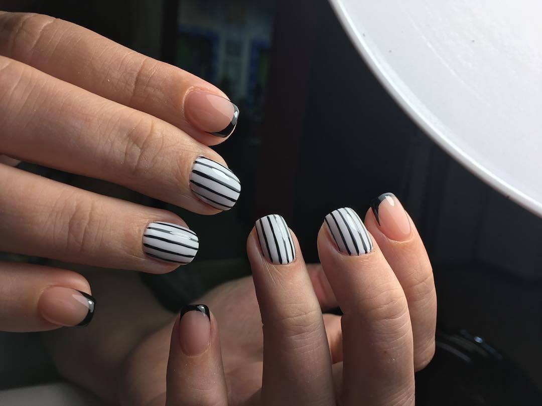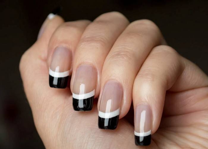 Французский маникюр в черно-белых тонах