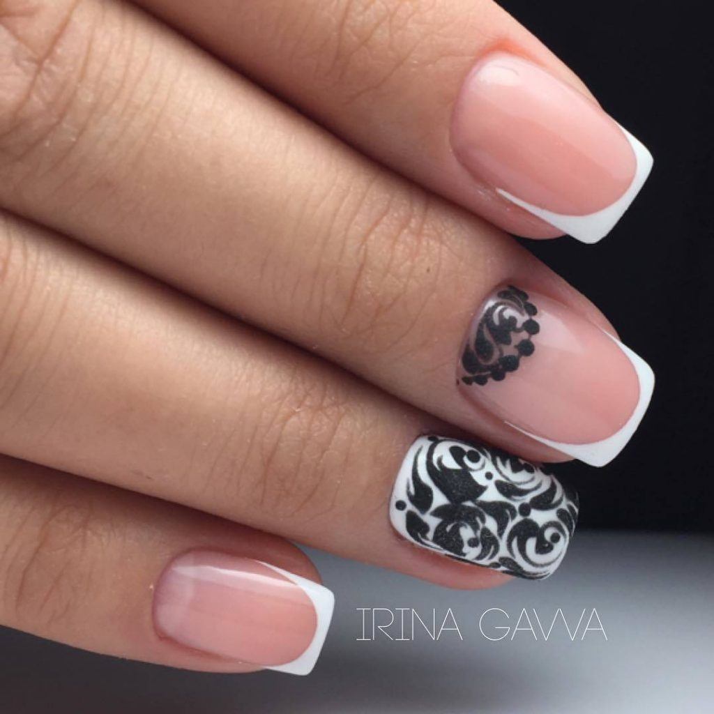 Френч в черно-белых тонах выглядит простым, красивым и элегантным. Хотя этот стиль может выглядеть несложным в исполнении, это лишь внешняя сторона медали.
