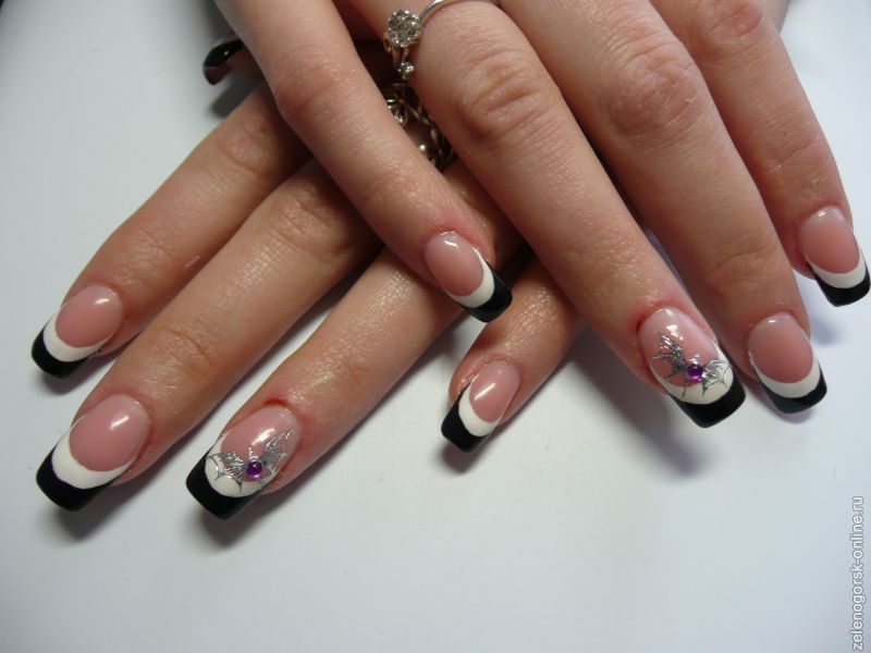 Если вы страстная поклонница французского маникюра, то по достоинству оцените коллекцию фото, которую мы подготовили для вас. Скромный дизайн, выдержанный в строгом стиле, украсит ваши ногти в любой ситуации. Вы удивитесь, как используя лишь черный и белый цвета лака, можно преобразить женские ручки.