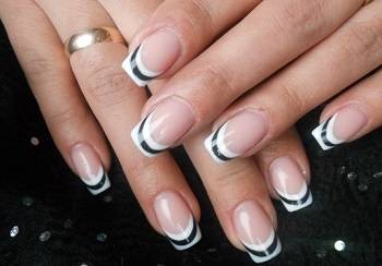 Френч-маникюр неплохо гармонирует с любым образом. И наравне с традиционным вариантом черно-белый французский дизайн ногтей носит также универсальный характер. Он довольно выгодно смотрится как на ноготках молоденьких девушек, так и на ногтевых пластинах взрослой дамы.