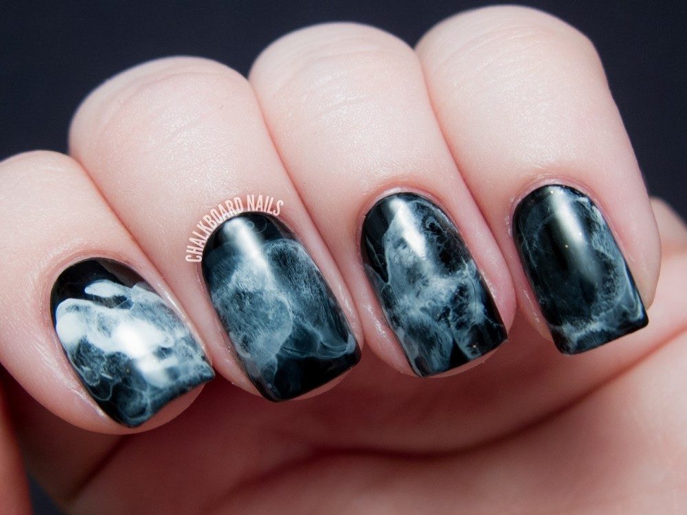 черный маникюр с узором