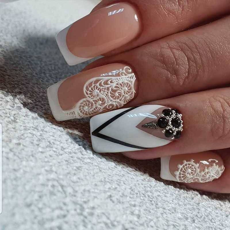 - Кружевной. Затейливым узором декорируют один или несколько ноготков на руке.