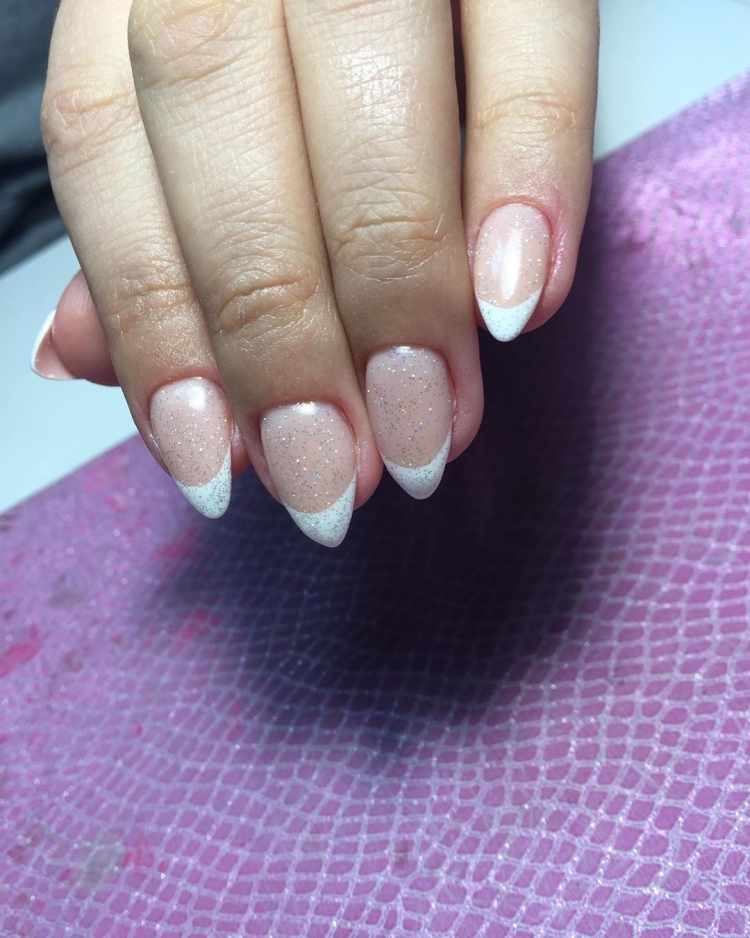 Где расположить блестки, чтобы они не испортили обаяние французского маникюра? Есть несколько вариантов:
