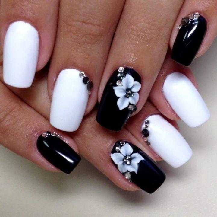 Вы также можете вырезать белые цветы на черной поверхности, чтобы создать оригинальный и красивый маникюр.