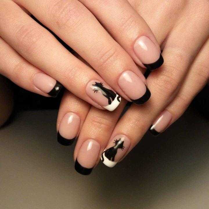 Многие думают, что французский маникюр — самостоятельное решение для нейл арта и дополнительный декор только испортит картину. Это не так. Черный french всегда можно дополнить ненавязчивым рисунком или стразами.