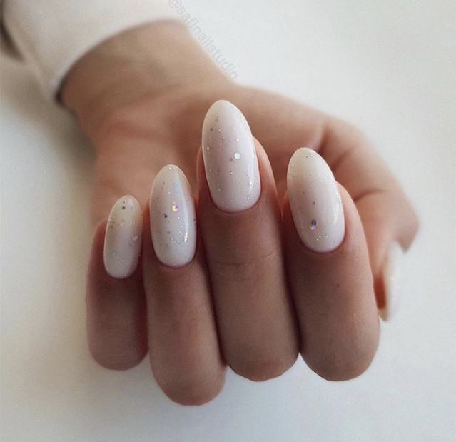 Маникюр молочного цвета шикарно смотрится с любыми украшениями.