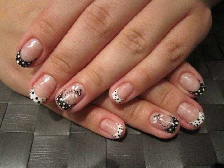 На белом френче будут красиво смотреться черные узоры и абстракции. Такой маникюр остается классическим, и в то же время радует своей неординарностью.