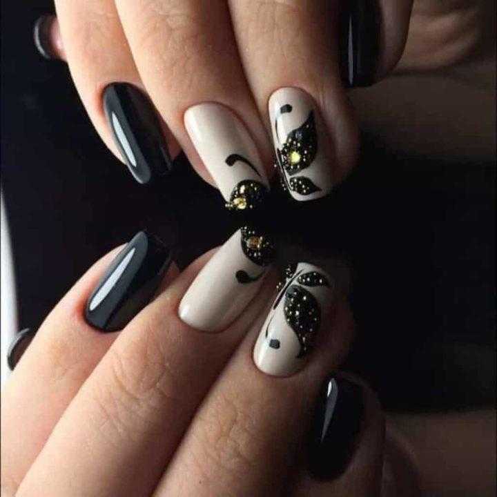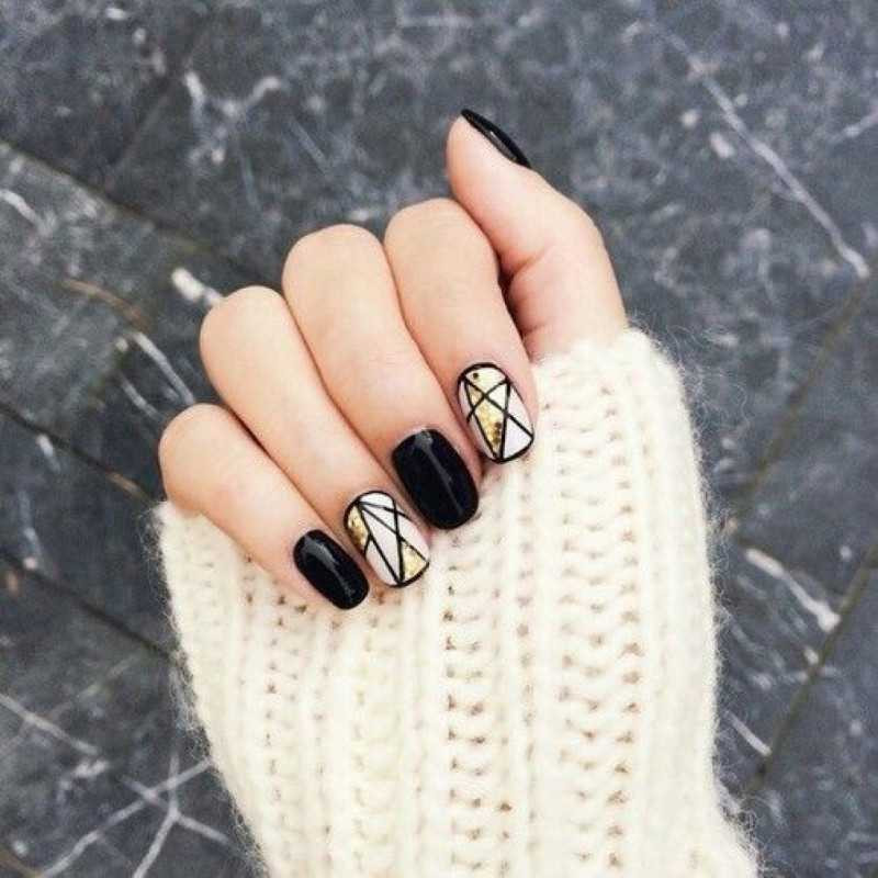 Дополнить такой маникюр можно стразами или стемпингом, но важно не переборщить, ведь черный и золотой цвет уже выглядят достаточно броско.