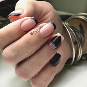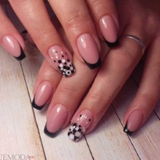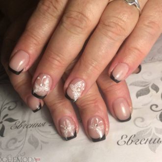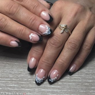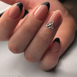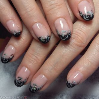 Многие думают, что французский маникюр — самостоятельное решение для нейл арта и дополнительный декор только испортит картину. Это не так. Черный french всегда можно дополнить ненавязчивым рисунком или стразами.