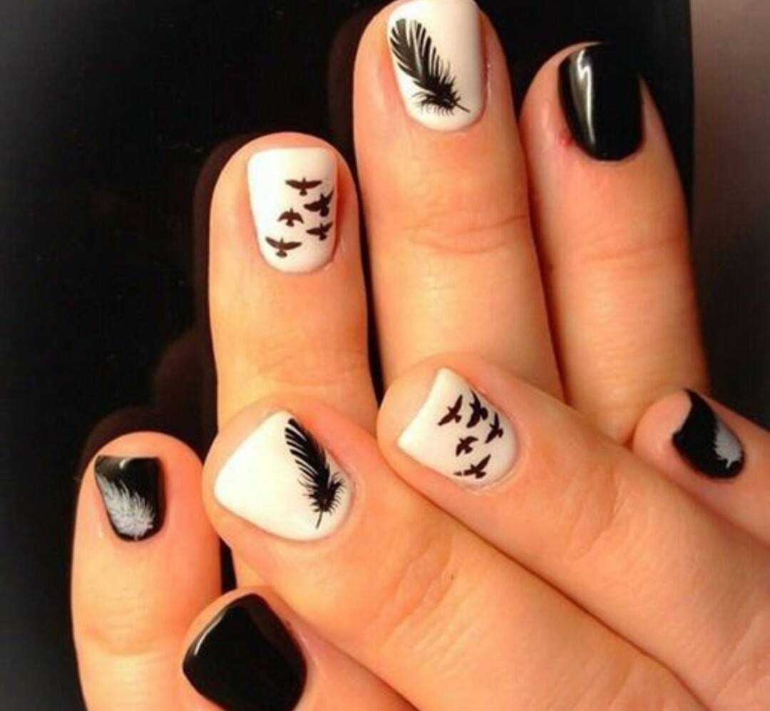 Не бойтесь экспериментировать и сочетать черно-белый маникюр с цветными рисунками или наклейками.