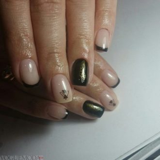 Лунный дизайн — оформление лунулы ноготка. Именно этот вариант декора как нельзя лучше сочетается с темные французским маникюром. Лунка может оформляться любым способом — аналогичным улыбке или, наоборот, контрастным.