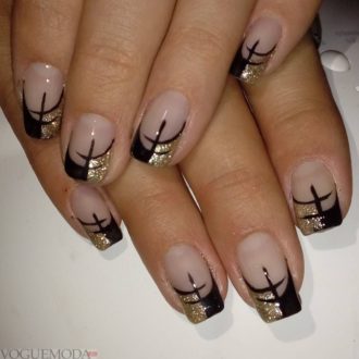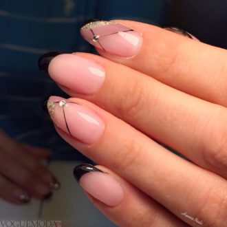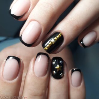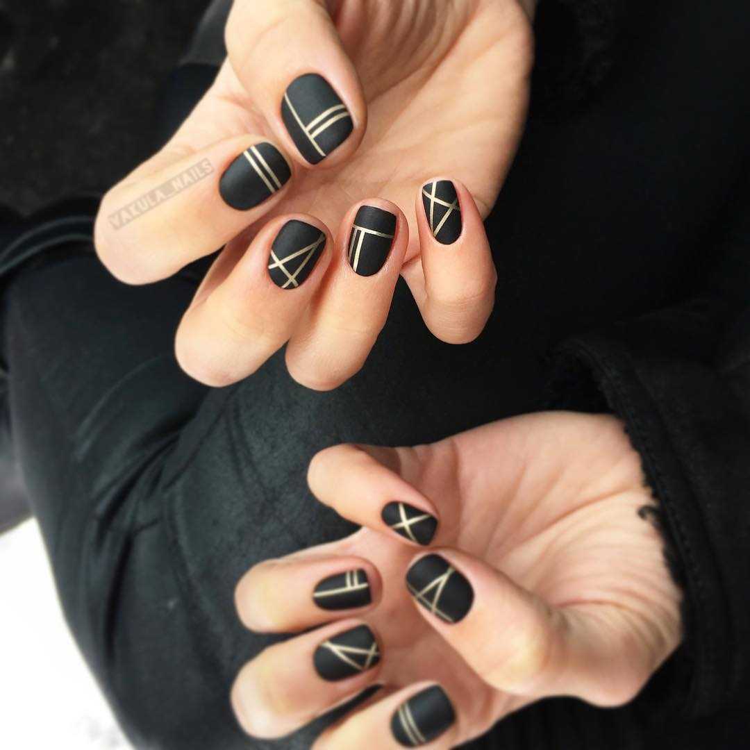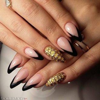 Дополнить такой маникюр можно стразами или стемпингом, но важно не переборщить, ведь черный и золотой цвет уже выглядят достаточно броско.