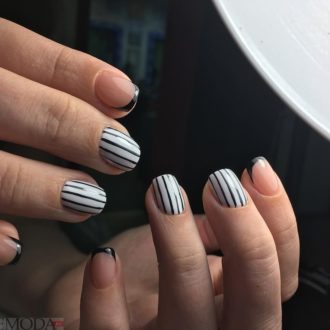 Несмотря на то что черно-белый дизайн ногтей сам по себе уже является классикой, в этом сезоне его рекомендуют выполнять следующим образом.