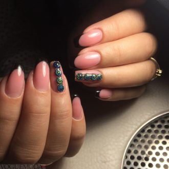 Очень нежно и воздушно смотрится розовый маникюр с френчем или стразами.
