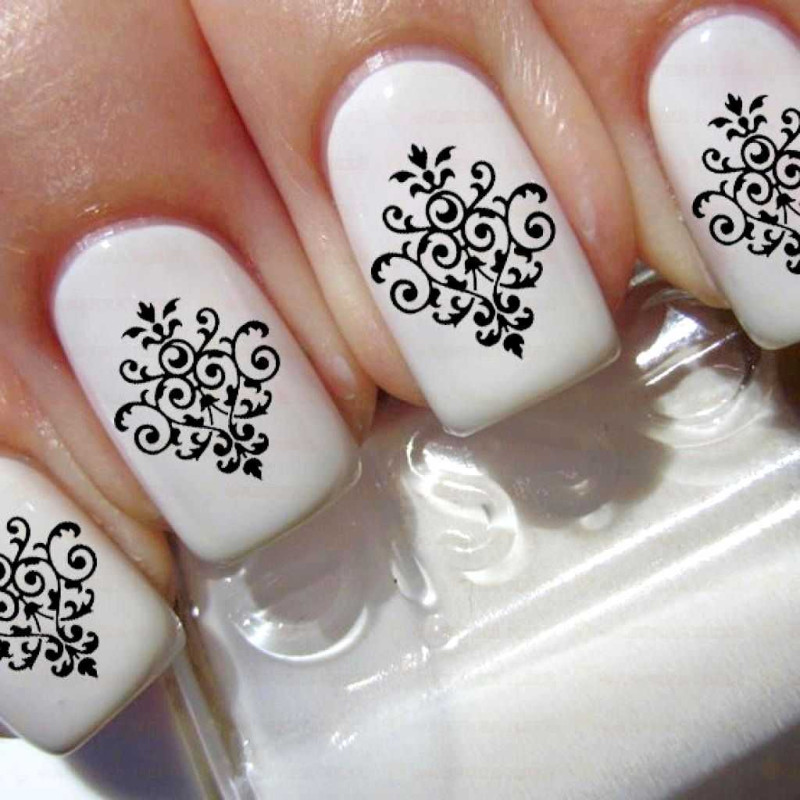 Сложные завитки и переплетения покрывают всю площадь основы. Иногда они представляют собой отдельные небольшие элементы, в других случаях — сливаются в кружева. На всех пластинках создают одинаковые узоры. Именно этот вид дизайна с вензелями наиболее распространен в салонах и среди любительниц домашнего маникюра.