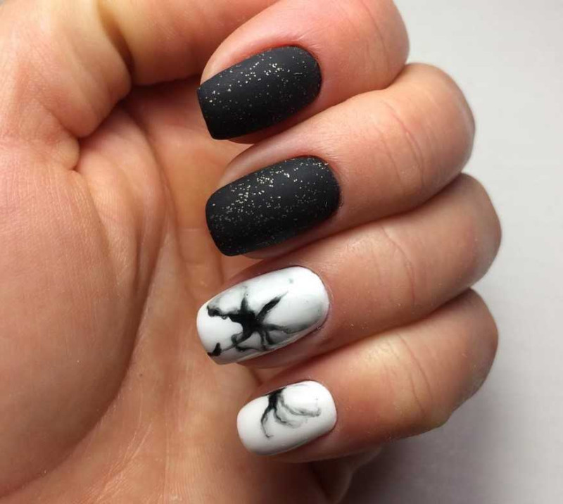 Мраморный черно-белый маникюр 2022 фото идеи